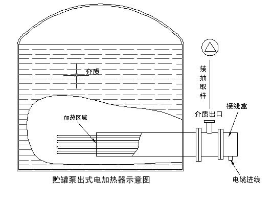 泵出型電加熱器主要適用于加熱貯罐內(nèi)各種粘性介質(zhì),使之局部變稀后可以用泵順利抽取。