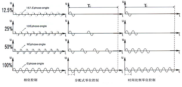 2.控制模式。綜觀國(guó)內(nèi)外可控硅電力控制器產(chǎn)品,控制模式無(wú)非就是兩種:相位控制和零位控制(分配式零位控制、時(shí)間比例零控制)。三者之間的比較請(qǐng)看以下圖表。